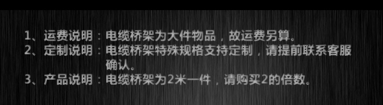 3.產品說明:電纜橋架為2米一件,請購買2的倍數。