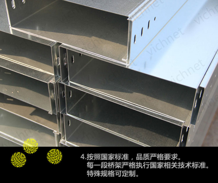 4、安裝國家標準,品質嚴格要求。每一段橋架嚴格執行國家相關技術標準,特殊規格可定制。