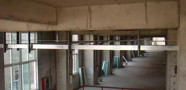 4、根據土建所給標高,確定兩端立柱焊接位置,立柱焊接在墊板上,焊接前使用水平尺進行檢測以保證立柱垂直度。