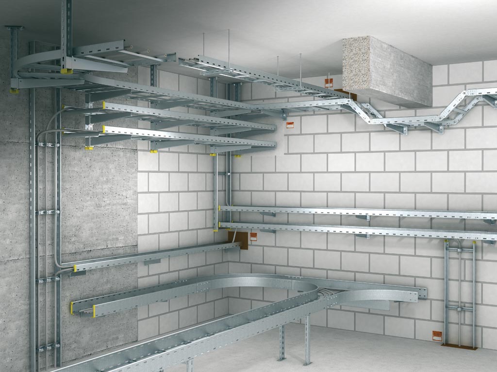 電纜橋架是由托盤的直線段、彎通、組件以及托臂(臂式支架)、吊架等構成具有密接支承電纜的剛性結構系統之全稱。